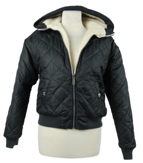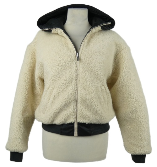 Dámska černá/smetanová šusťáková/huňatá zateplená crop bunda s kapucňou Hollister