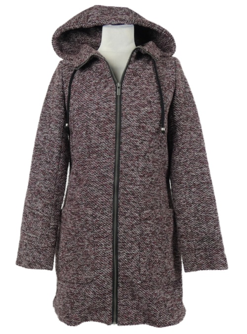 Dámsky vínovo-čierny melírovaný pletený kabát s kapucňou Multiblu