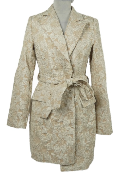 Dámsky béžový kvetovaný kabát s opaskom In the Style
