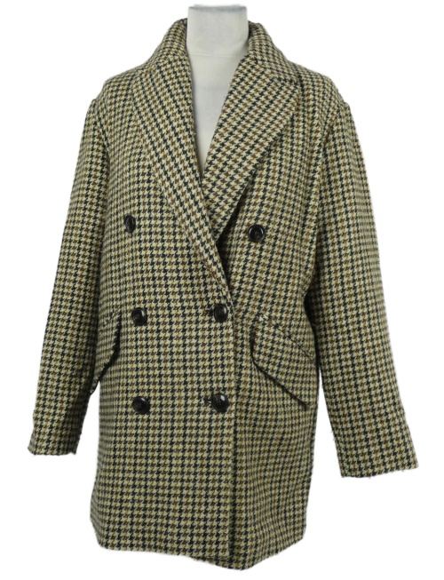 Dámsky čierno-béžový kockovaný vlnený kabát MNG