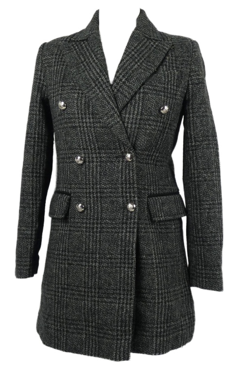Dámsky čierno-sivý kockovaný vlnený kabát MNG