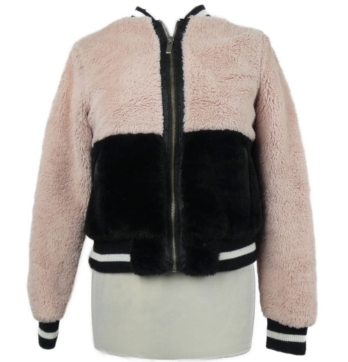 Dámska svetloružová -čierna chlpatá crop bunda Soya