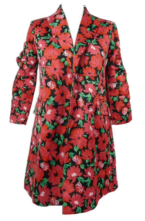 Nové - Dámsky červeno-čierny kvetovaný kabát Savida
