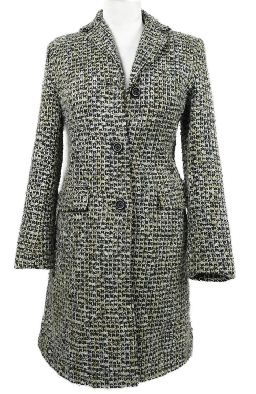 Dámsky čierno-béžovo-svetlomodrý vzorovaný kabát