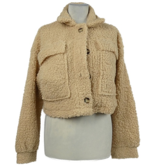 Dámska béžová huňatá crop bunda Shein