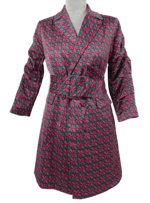 Dámsky ružovo-zelený vzorovaný jarný kabát s opaskom Savida