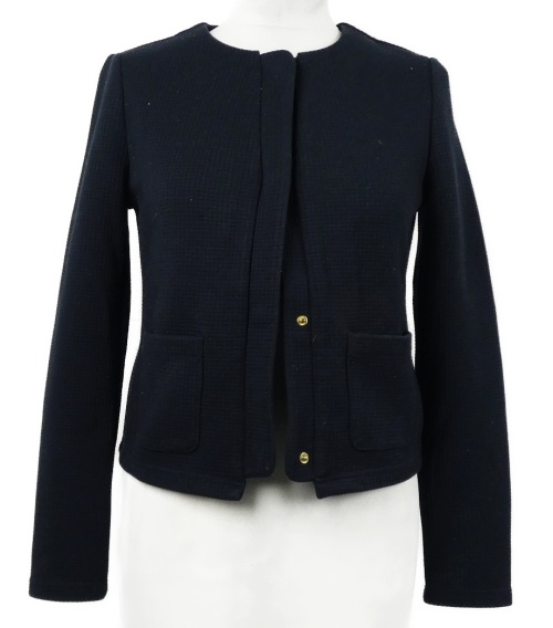 Dámský tmavomodrý vzorovaný sakový crop kabátek Camaieu