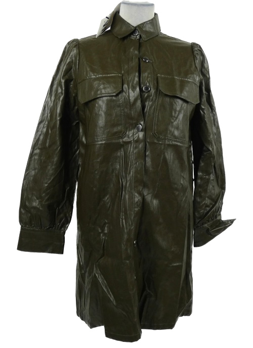 Nové - Dámsky khaki koženkový kabát Zara