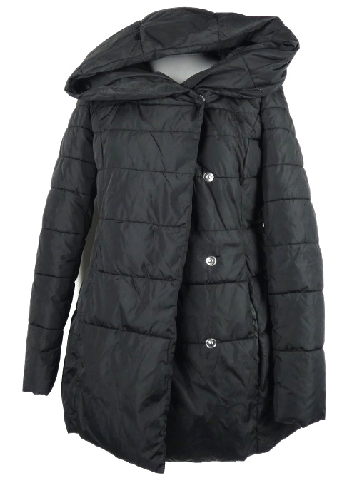 Dámsky čierny šušťákový zateplený kabát s kapucňou Amisu