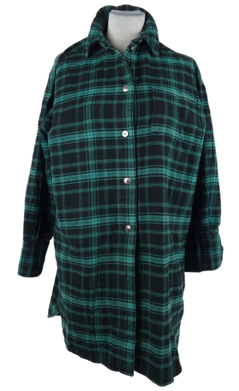 Dámsky čierno-zelený kockovaný košeľový kabát H&M