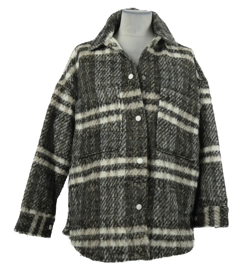 Dámska hnedo-biela kockovaná vlnená košeľová bunda MissGuided