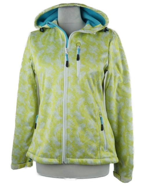 Dámska limetkovo-biela vzorovaná softshellová bunda s kapucňou Crivit