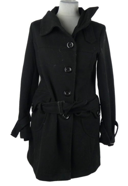 Dámsky čierny vlnený kabát s opaskom Be Present