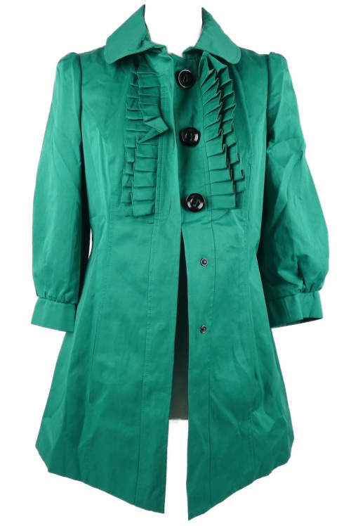 Dámsky zelený kabát s volánikmi E-vie