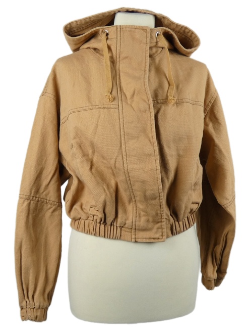 Dámska skořicová rifľová crop bunda s kapucňou Asos