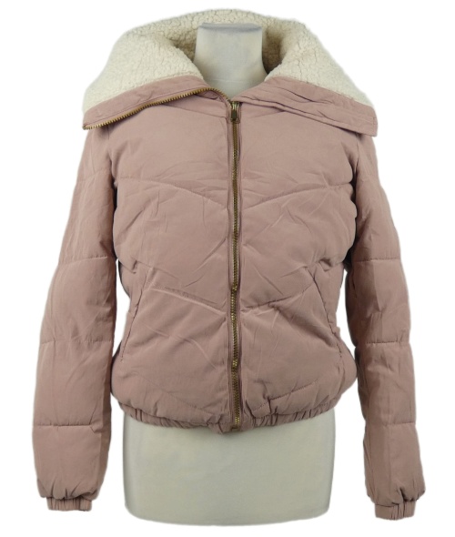 Dámska svetloružová šušťáková zimná crop bunda s golierom Primark