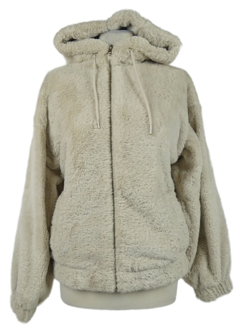 Dámska béžová kožušinová bunda s kapucňou F&F