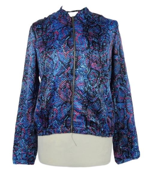 Dámska modro-ružovo-čierna vzorovaná saténová ľahká crop bunda Atmosphere