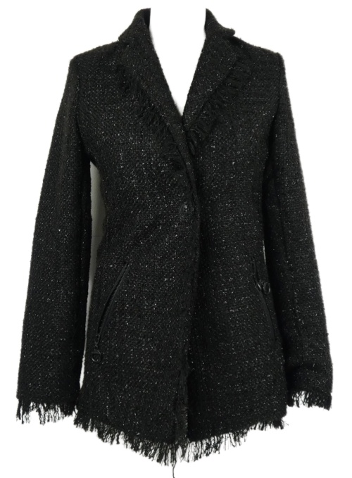 Dámsky čierny trblietavý pletený kabát Colloseum