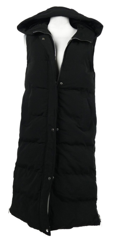 Dámska čierna šušťáková zateplená maxi vesta s kapucňou Orcelly