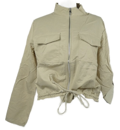 Dámska béžová ľahká crop bunda s rolovacími rukávy