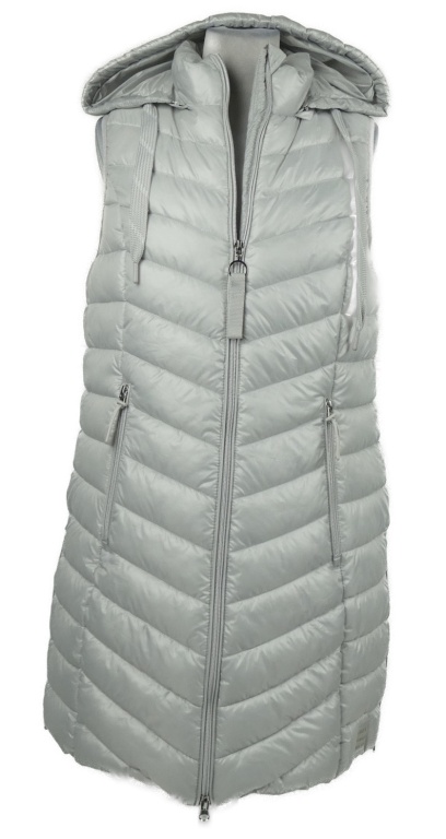 Dámska sivá šušťáková zateplená maxi vesta s kapucňou Sure