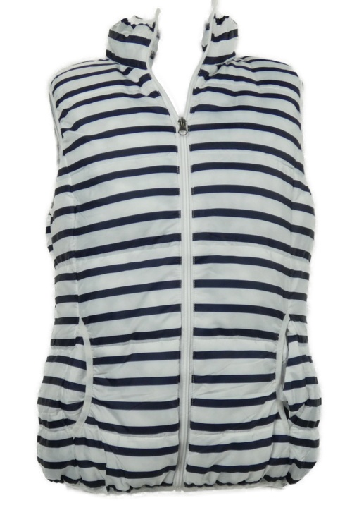 Dámska bielo-tmavomodrá pruhovaná šušťáková zateplená vesta