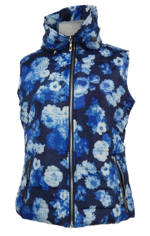 Dámska tmavomodro-modrá kvetovaná šušťáková zateplená vesta Mudfower