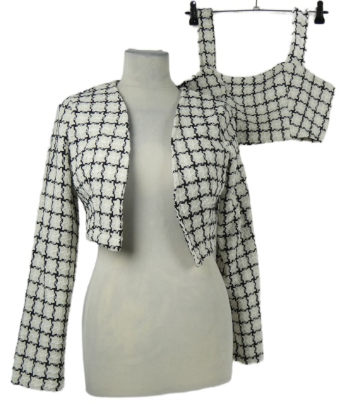 2x Dámsky smetanovo-čierny vzorovaný crop pletený cardigán + crop top Shein