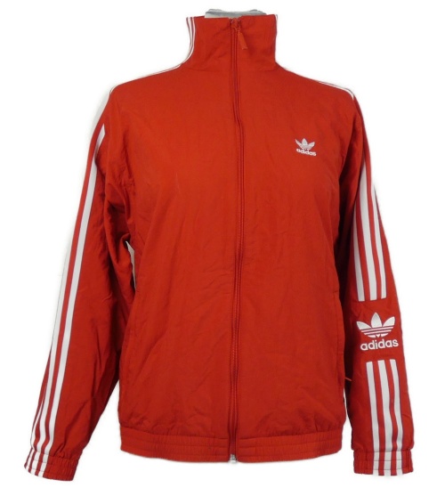 Dámska červená šušťáková športová bunda s pruhmi Adidas