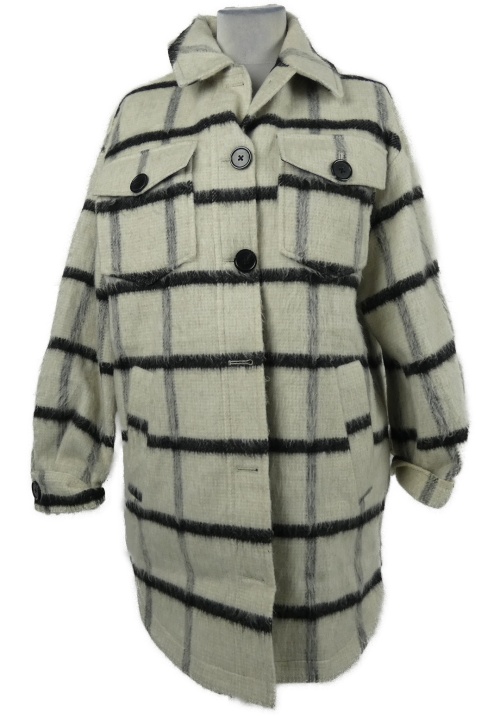 Dámsky béžovo-čierny kockovaný vlnený kabát Topshop