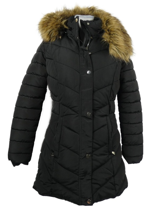 Dámsky čierny šušťákový zimný kabát s kapucňou s kožúškom Goldigga