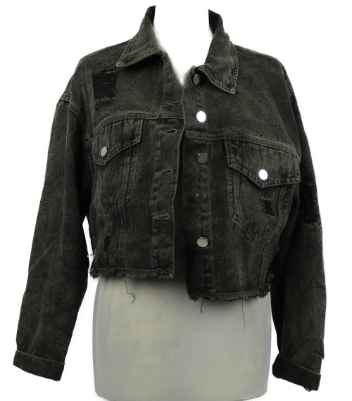 Dámska tmavosivá rifľová crop bunda s vyšúchaním