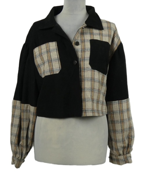 Dámska čierno-béžová kockovaná košeľová crop bunda Shein