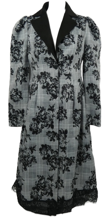 Dámsky sivo-čierny kockovaný šušťákový zateplený kabát s kvetmi Shein