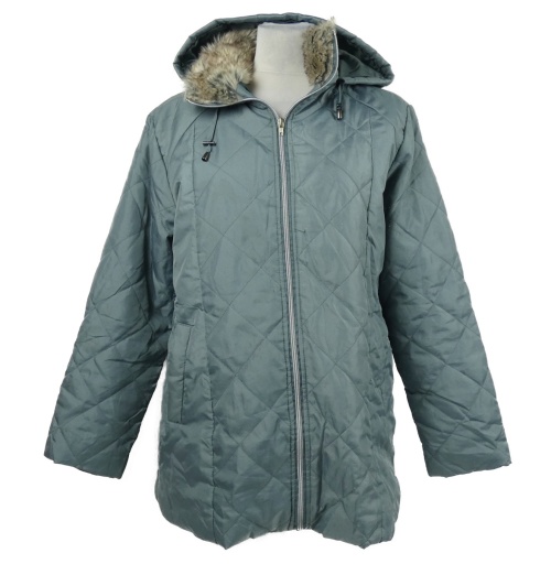 Dámska modrošedá šušťáková prešívaná zateplená bunda s kapucňou