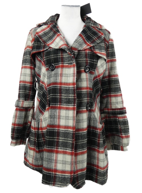 Nové - Dámsky čierno-červeno-sivý kockovaný vlnený kabát CLG Paris