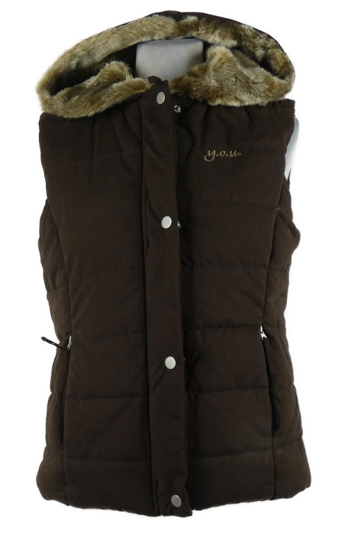 Dámska hnedá šušťáková zateplená vesta s kapucňou Y.O.U