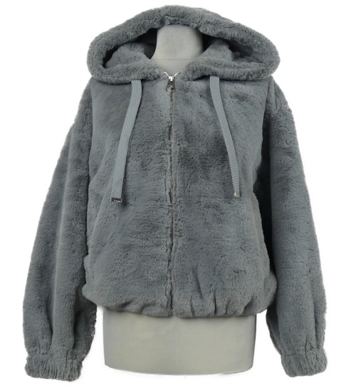 Dámska sivá kožušinová bunda s kapucňou Bershka