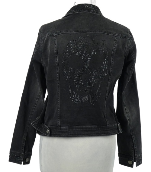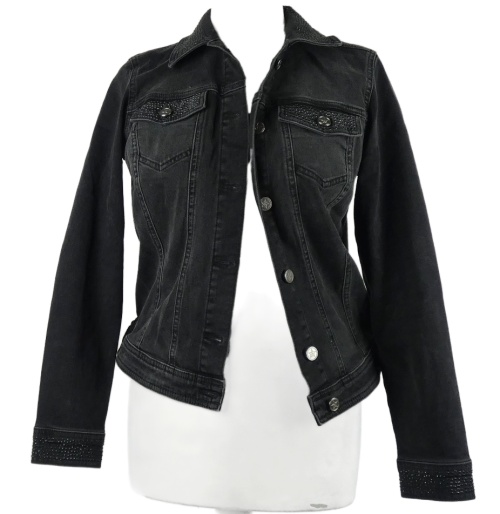 Dámska čierna rifľová crop bunda s kamienkami Thom