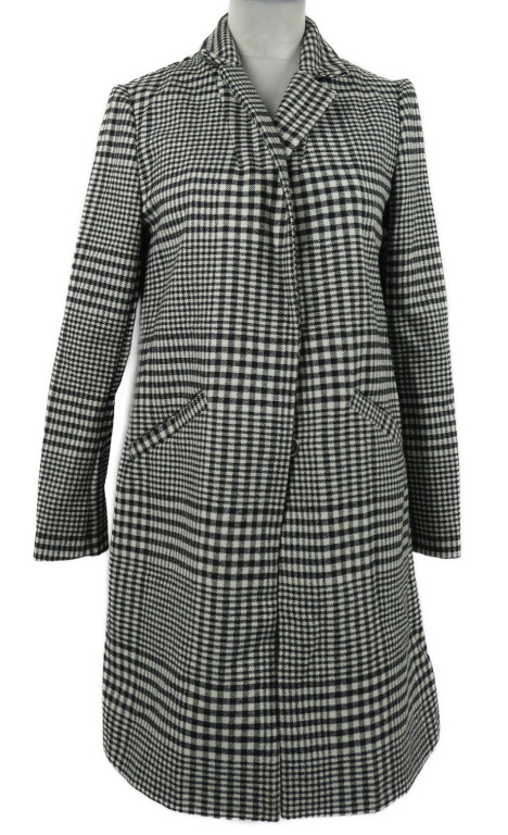 Dámsky čierno-biely kockovaný vlnený kabát Primark