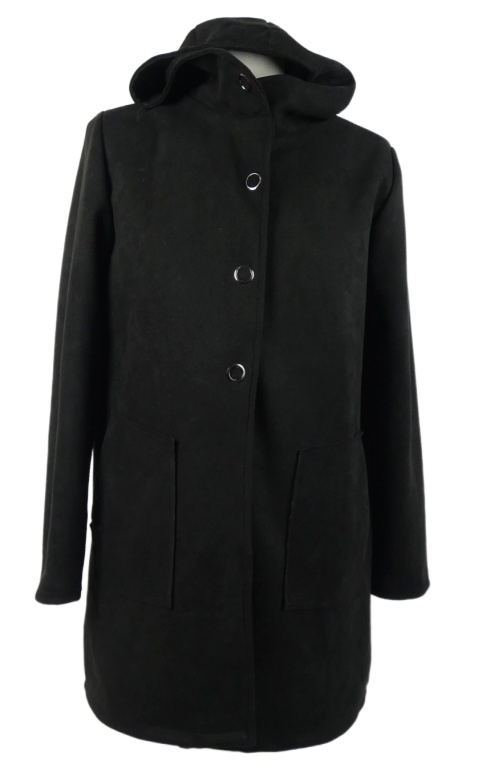 Dámsky čierny semišový kabát s kapucňou Pitarello