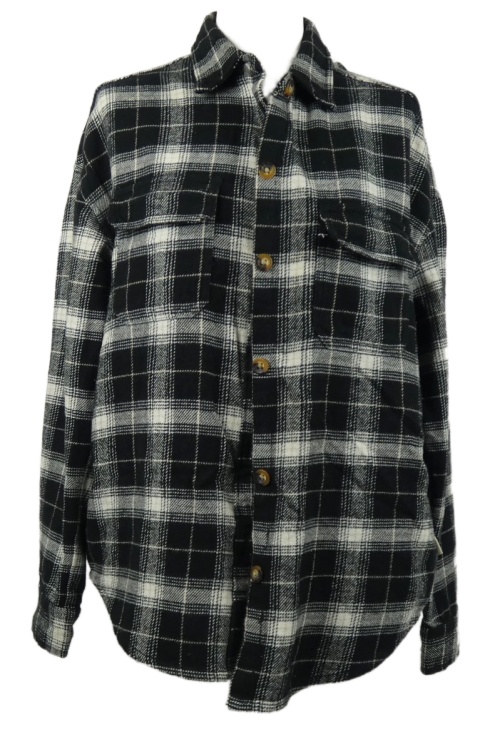 Dámska čierno-biela kockovaná košeľová flanelová bunda Hollister