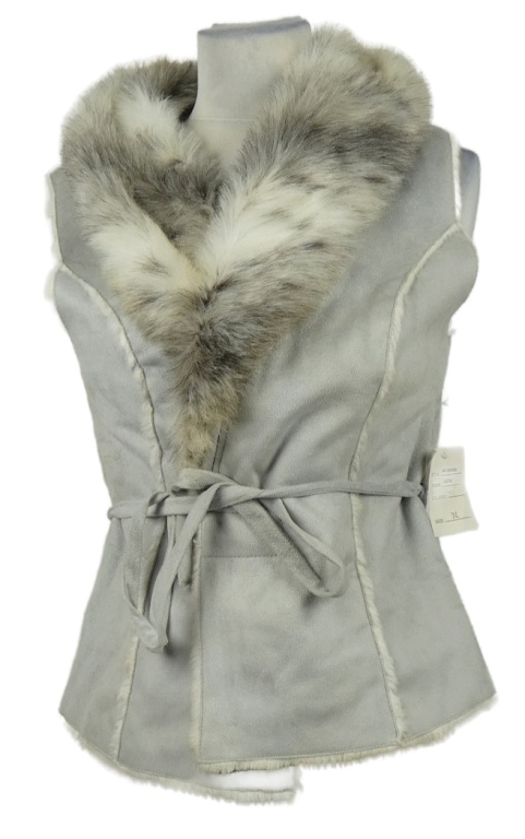 Nové - Dámska sivá semišová vesta s kožúškom a opaskom