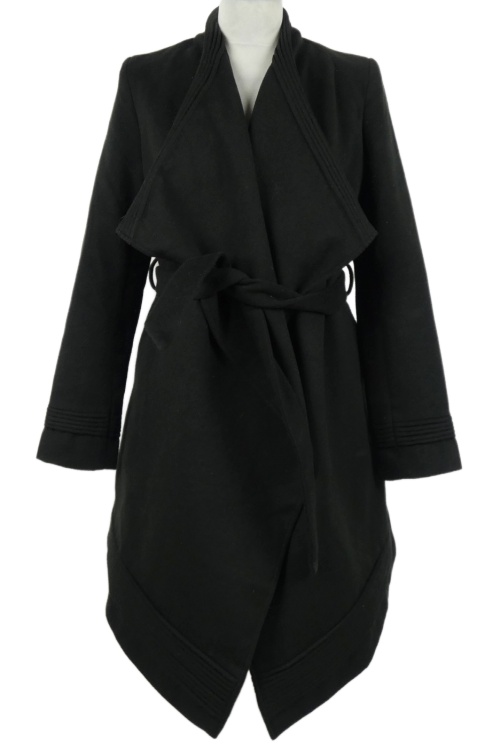 Dámsky čierny vlnený kabátový cardigán s opaskom Jovonna
