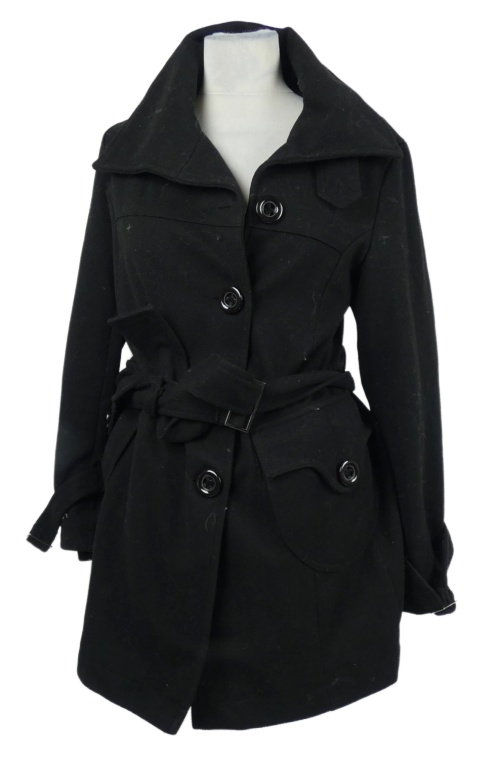 Dámsky čierny vlnený kabát s opaskom Be Present