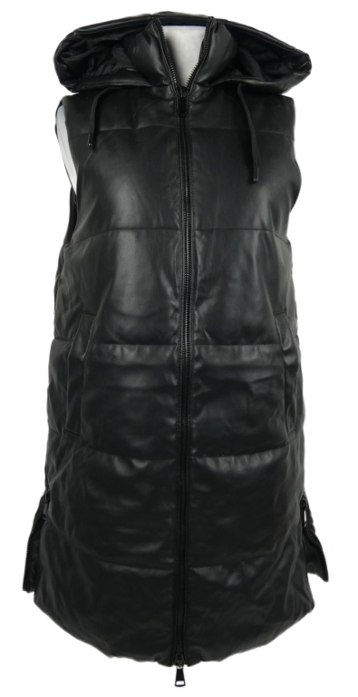 Dámska čierna koženková zateplená maxi vesta s kapucňou Primark