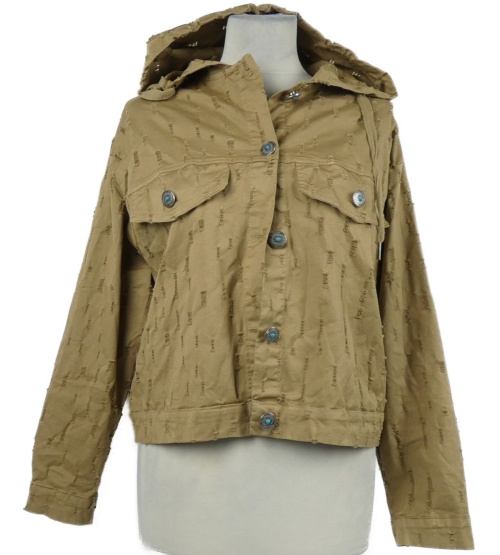 Dámska béžová vzorovaná plátenná crop bunda s kapucňou