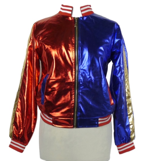 Dámský modro-červený crop bomber s nápisem - Harley Quinn
