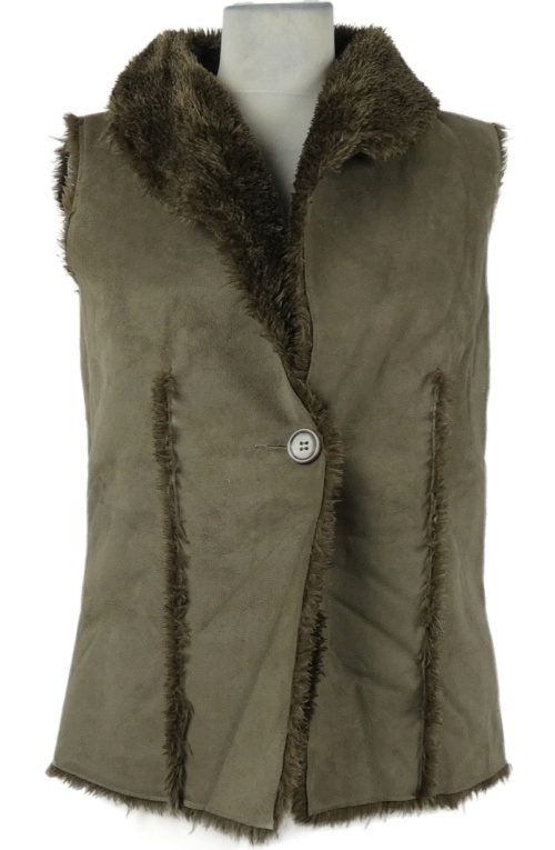 Dámska hnedá semišová zateplená vesta s kožúškom